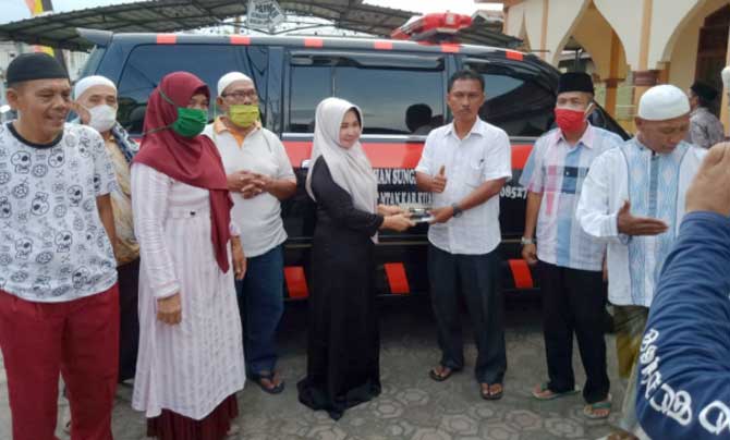 Sabtu (23/5/2020) sore, bertempat di halaman Masjid Al Muhajirin Sungai Jering, Hj Juniwarti menyerahkan satu unit ambulans pada masyarakat di Kelurahan Sungai Jering, Kecamatan Kuantan Tengah.