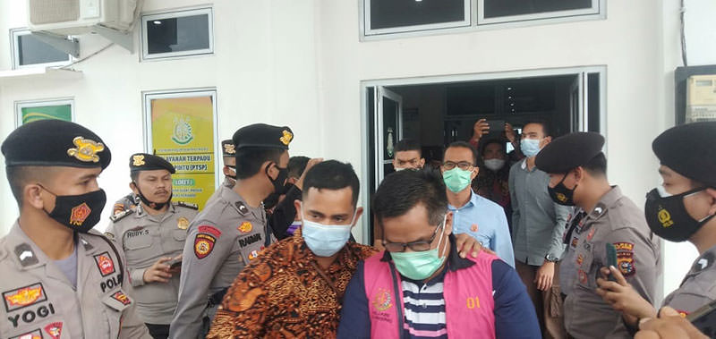 TELUKKUANTAN (RIAUPOS.CO) — Setelah hampir empat jam menjalani pemeriksaan sebagai tersangka di Kantor Kejaksaan Negeri Kuansing, Kawasan Kebun Nenas Jalan Raya Teluk Kuantan-Pekanbaru, Kepala BPKAD Kuansing, HA alias K yang berstatus sebagai tersangka kasus dugaan korupsi SPPD Fiktif di BPKAD Kuansing 2019 sejak 10 Maret 2021 lalu, Kamis (25/3/2021) di tahan penyidik Kejari Kuansing.