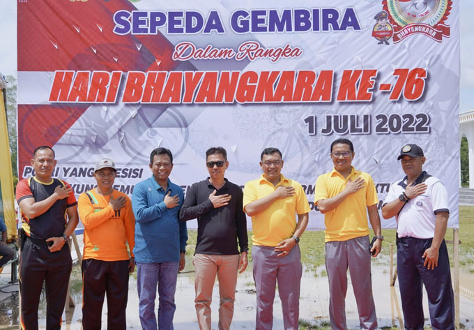 BAGANSIAPIAPI (RIAUPOS.CO) – Masyarakat antusias mengikuti kegiatan sepeda santai dalam rangka memeriahkan HUT ke-76 Bhayangkara yang digelar Polres Rokan HIlir (Rohil) bersama Pemda Rohil di Bagansiapiapi, Sabtu (25/6/2022).