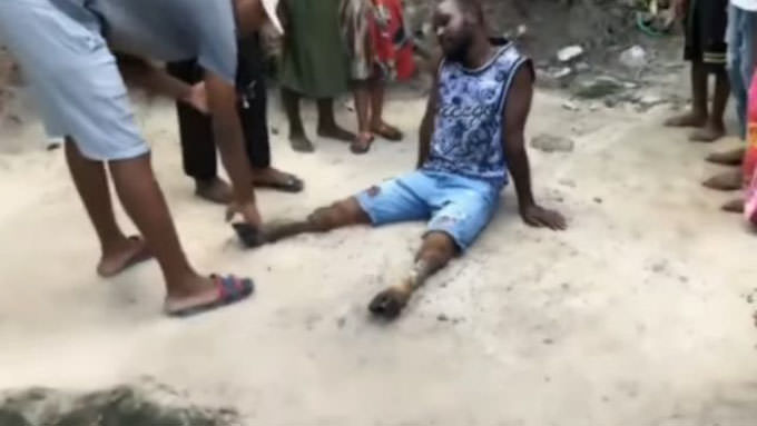 Pria itu menangis kesakitan, tetapi di sela-sela tangisnya dia mengeluarkan suara lengkingan seperti suara sapi. Warga yang mengurumuni pria itu terlihat kebingunan. Ada yang memeriksa dengan meraba kaki pria itu, ada pula yang mengambil foto dan video saat dia terus menangis.