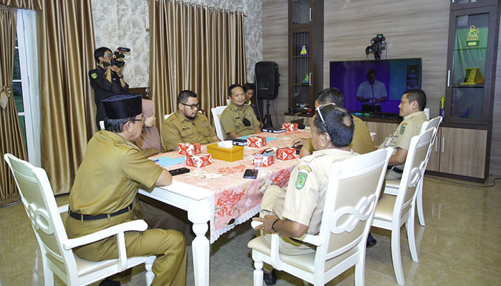 Rapat ini digelar secara virtal yang diikuti bupati melalui ruangan multimedia Dinas Komunikasi Informasi Persandian dan Statistik (Diskominfopers) Inhil di Kompleks Kantor Bupati, Selasa (24/5) sore.
