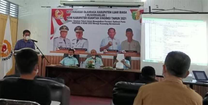 TELUKKUANTAN (RIAUPOS.CO) – Bupati Kuantan Singingi Andi Putra SH MH membuka Musyawarah Kabupaten Luar Biasa (Musyorkablub) Komite Olahraga Nasional Indonesia (KONI) Kabupaten Kuantan Singingi, yang dilaksanakan di Aula Balai Diklat Telukkuantan, Senin (26/7/2021).