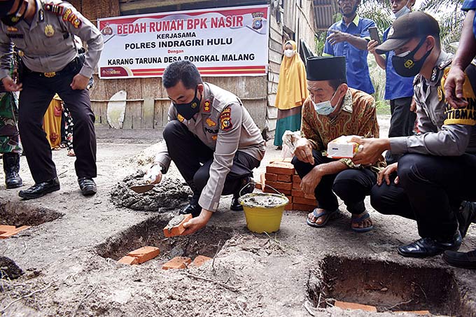 RENGAT (RIAUPOS.CO) – Polres Indragiri Hulu (Inhu) bersama Karang Taruna Desa Bongkal Malang, Kecamatan Kelayang, bedah rumah salah seorang warga kurang mampu, Muhammad Nasir (70).