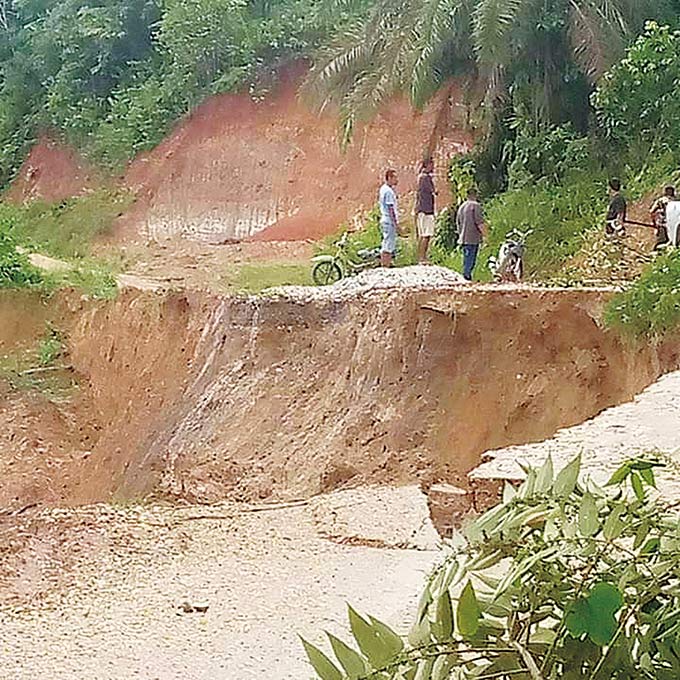 KUANSING (RIAUPOS.CO) – Akses jalan desa Pulau Kedundung kembali amblas, sejak sepekan hingga Selasa (19/10) kemarin. Amblasnya akses jalan yang terdapat di wilayah Desa Pulau Aro, Kuantan Tengah dipicu tingginya curah hujan di Kuansing.
