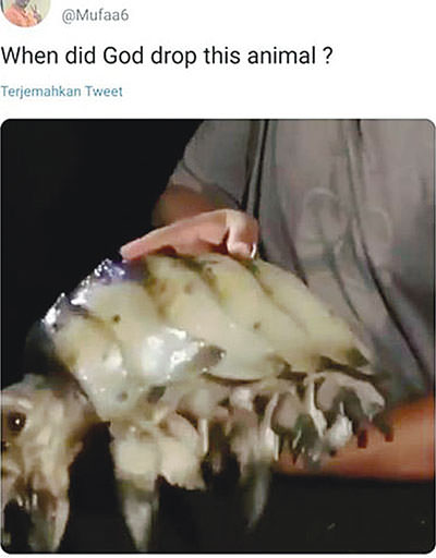 (RIAUPOS.CO) — Potongan video yang memperlihatkan hewan aneh diunggah pemilik akun Twitter Young Simba (bit.ly/HewanBertempurung) pada 22 Februari 2020. Unggahan itu dilengkapi tulisan tentang penciptaan hewan tersebut. “When did God drop this animal?” begitu pertanyaannya.