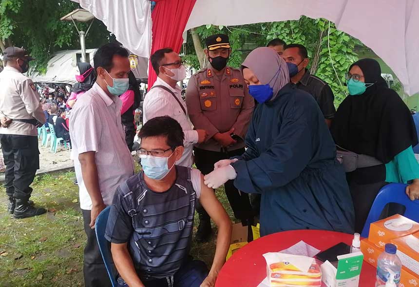 (RIAUPOS.CO) – Realisasi vaksinasi massal yang dikampanyekan oleh Polres Kepulauan Meranti dalam rangka HUT Bhayangkara ke-75 tembus ribuan dosis, Sabtu (26/6). Padahal dari informasi yang diterima oleh Riau Pos melalui Kapolres Kepulauan Meranti AKBP Eko Wimpiyanto Hardjito SIK, jika realisasi tersebut melebihi dari target yang mereka tetapkan sebelumnya.