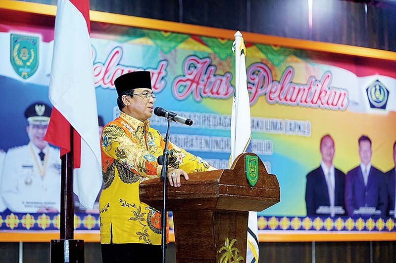 INDRAGIRI HILIR (RIAUPOS.CO) — Bupati Indragiri Hilir (Inhil) HM Wardan mengukuhkan pengurus Asosiasi Pedagang Kaki Lima (APKL) priode 2020-2023, Senin (27/1) malam.
