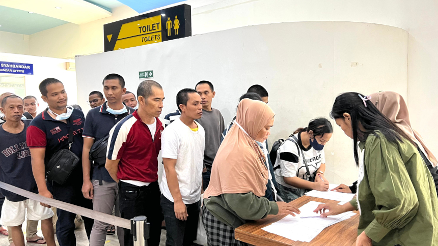 “Para PMI ini berasal dari berbagai daerah, antara lain Jawa Timur 15 orang, Aceh 9 orang, Sumut 6 orang, NTB 7 orang, Riau 3 orang, serta masing-masing 1 orang dari Jambi, Banten, dan Jawa Barat,” jelasnya.