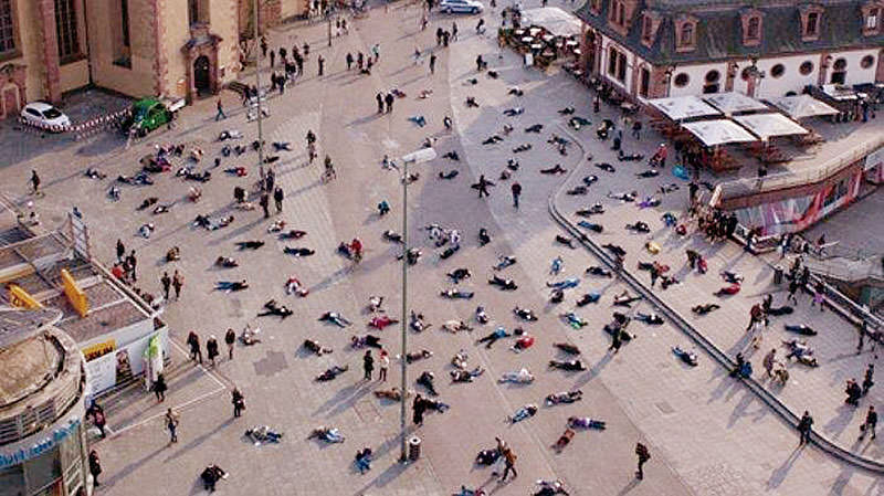 Foto yang diambil pada tahun 2014 ini adalah sebuah pertunjukkan seni demi mengenang 528 korban kamp konsentrasi Nazi.