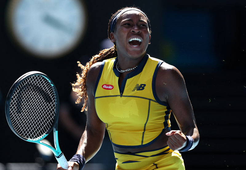 Unggulan keempat asal Amerika itu mengalahkan petenis Ukraina tersebut dalam cuaca panas di Rod Laver Arena. Ia meraih kemenangan 7-6(8/6), 6-7(3/7), 6-2 dalam waktu tiga jam delapan menit. Dia akan menghadapi juara bertahan dan unggulan kedua Aryna Sabalenka atau unggulan kesembilan Barbora Krejcikova pada Kamis untuk memperebutkan satu tempat di final.