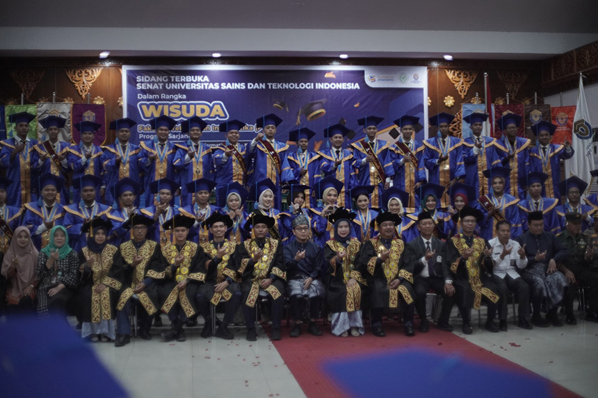 Civitas akademika Universitas Sains dan Teknologi Indonesia foto bersama usai pelantikan wisudawan, Rabu (5/11/2025). USTI untuk Riau Pos