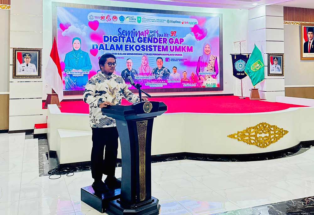 Seminar tersebut berlangsung di Gedung Daerah Balai Pauh Janggi, Kota Pekanbaru, Senin (15/12). Kegiatan ini diikuti oleh berbagai pemangku kepentingan dan pelaku UMKM perempuan yang ingin meningkatkan pemahaman literasi digital di era ekonomi modern.