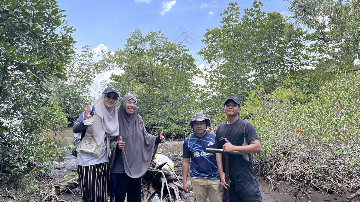 Tim peneliti Unri melakukan observasi lapangan di perairan mangrove Desa Buruk Bakul, Kebupaten Bengkalis, Ahad (17/8/2025).