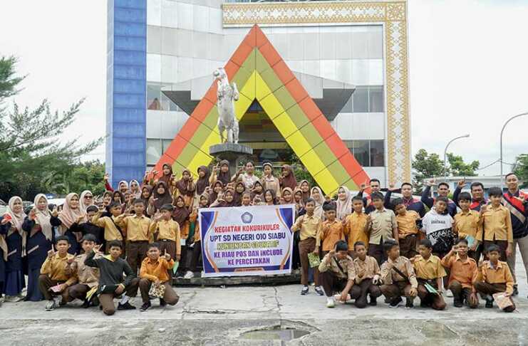 PEKANBARU (RIAUPOS.CO) – Sebanyak 45 murid SD Negeri 010 Siabu, Kecamatan Salo, Kabupaten Kampar, melakukan kunjungan edukatif ke redaksi Riau Pos, Rabu (17/12). Kegiatan ini didampingi kepala sekolah dan para guru sebagai bagian dari upaya meningkatkan literasi sekaligus mengenalkan media cetak kepada para murid.