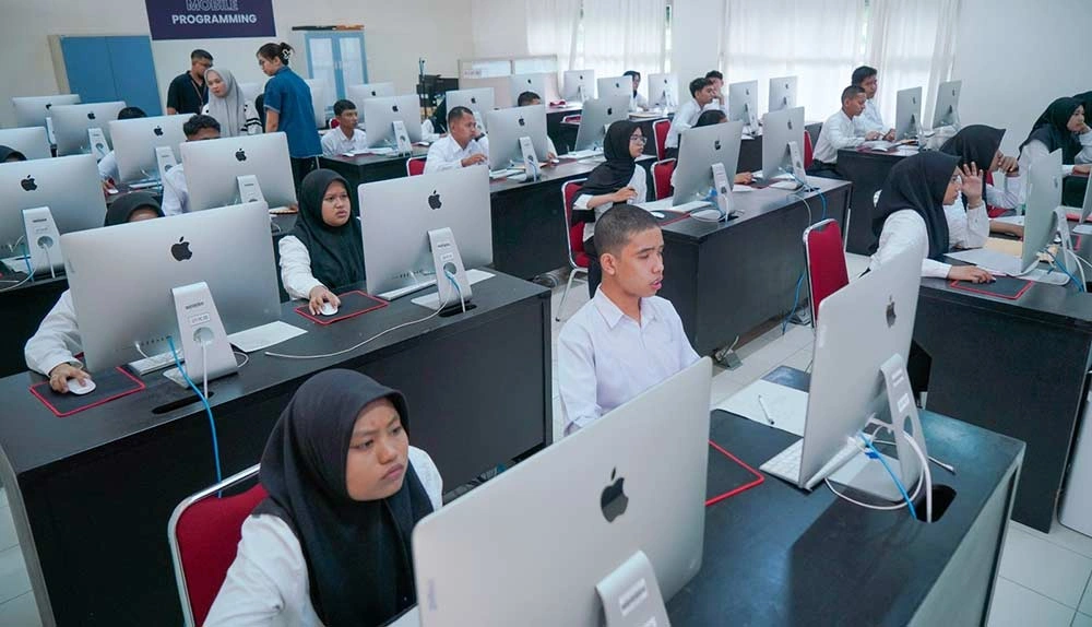 Peserta mengikuti seleksi ujian berbasis komputer (CBT) penerimaan mahasiswa baru program Beasiswa Prestasi Yayasan Politeknik Caltex Riau, Selasa (21/4/2026). PCRuntuk Riau Pos