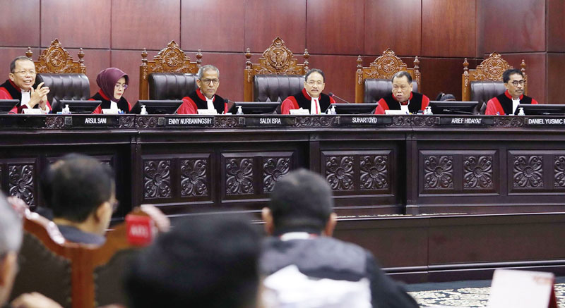 Suasana sidang perselisihan hasil pemilihan umum (PHPU) Pilpres 2024 dengan pemohon calon presiden dan calon wakil presiden di Gedung Mahkamah Konstitusi, Jakarta, Kamis (28/3/2024). (FEDRIK TARIGAN/jpg)