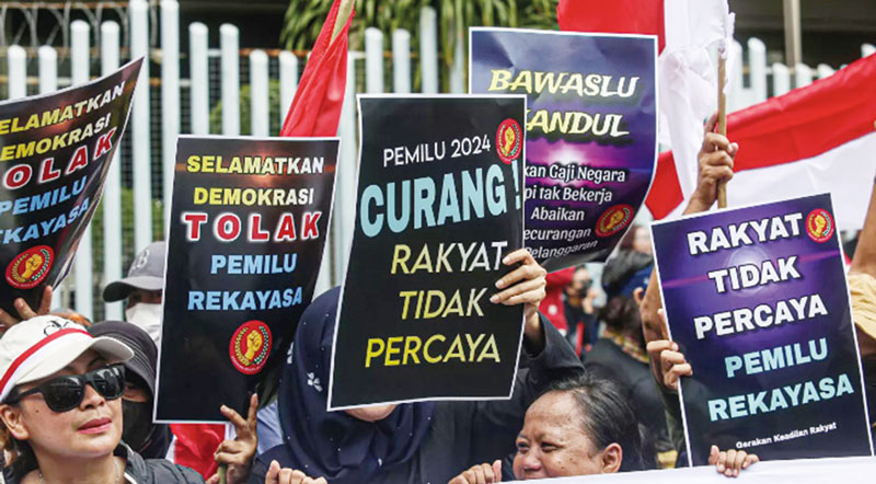 Massa yang tergabung dalam Gerakan Keadilan Rakyat melakukan aksi unjuk rasa di depan Gedung Bawaslu RI di Jalan MH Thamrin Jakarta, beberapa waktu lalu. (MIFTAHUL HAYAT/JPG)