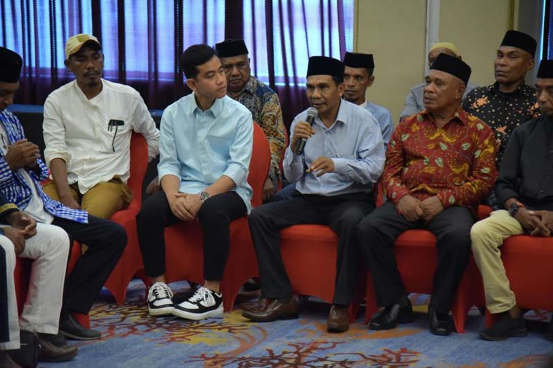 Gibran Rakabuming Raka mendengar saat bertemu raja-raja Maluku di Swiss-Belhotel Ambon, kemarin (8/1/2024). (Tim Media Partai Golkar)