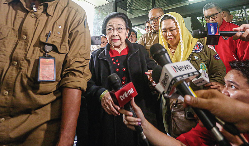 Ketua Umum PDIP Megawati Soekarnoputri sedang diwawancarai wartawan usai pertemuan dengan TPN di Jakarta, kemarin (15/2/2024). (MIFTAHUL HAYAT/JAWAPOS)