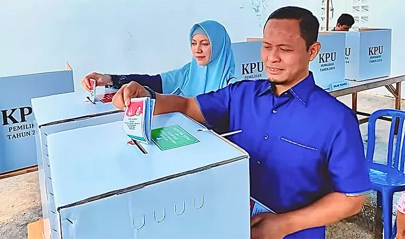 Agung Nugroho bersama istri saat pencoblosan (dok riaupos.co)