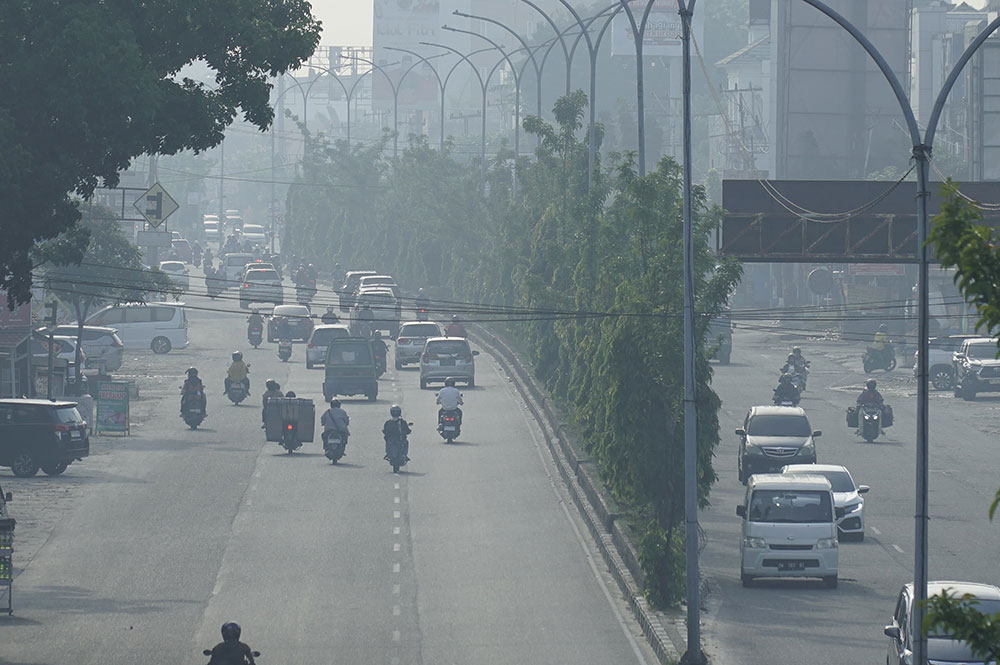 RIAUPOS.CO – Kota Pekanbaru kembali diselimuti kabut asap pada Senin pagi (30/6). Mulai pukul 05.00 hingga 09.00 WIB, udara terasa tidak sehat. Banyak pengendara motor dan pejalan kaki mengeluhkan sesak napas dan jarak pandang yang menurun.