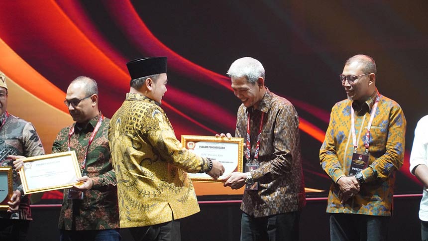 Penghargaan ini diserahkan Ketua KPU RI Mochammad Afifuddin dalam acara Rapat Konsolidasi Nasional dalam Rangka Evaluasi Pelaksanaan Pemilu dan Pilkada di Ecovention Ancol Jakarta, Senin (30/12).
