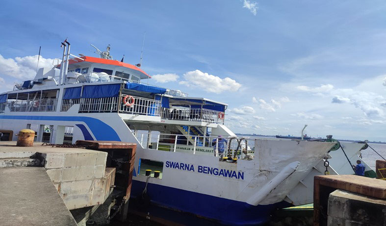 KMP Swarna Bengawan yang dipinjamkan ke Pemkab Bengkalis bersandar di pelabuhan Ro-Ro Dumai-Rupat, Rabu (11/6/2025). Dishub Riau untuk Riau Pos