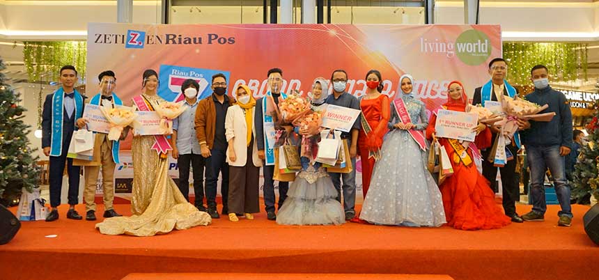 PEKANBARU (RIAUPOS.CO) – Sebanyak 20 finalis Z Face Riau 2021 tampil menawan dan menampilkan tarian daerah nusantara pada Grand Final Pemilihan Riau Pos Z Face Boy and Girl Riau 2021 di Mal Living World Pekanbaru, Sabtu (11/12). Keluar sebagai pemenang Z Face Boy Riau 2021 adalah Teguh Wirman dan Z Face Girl Riau 2021 dimenangkan Yasmin Alia Siregar.