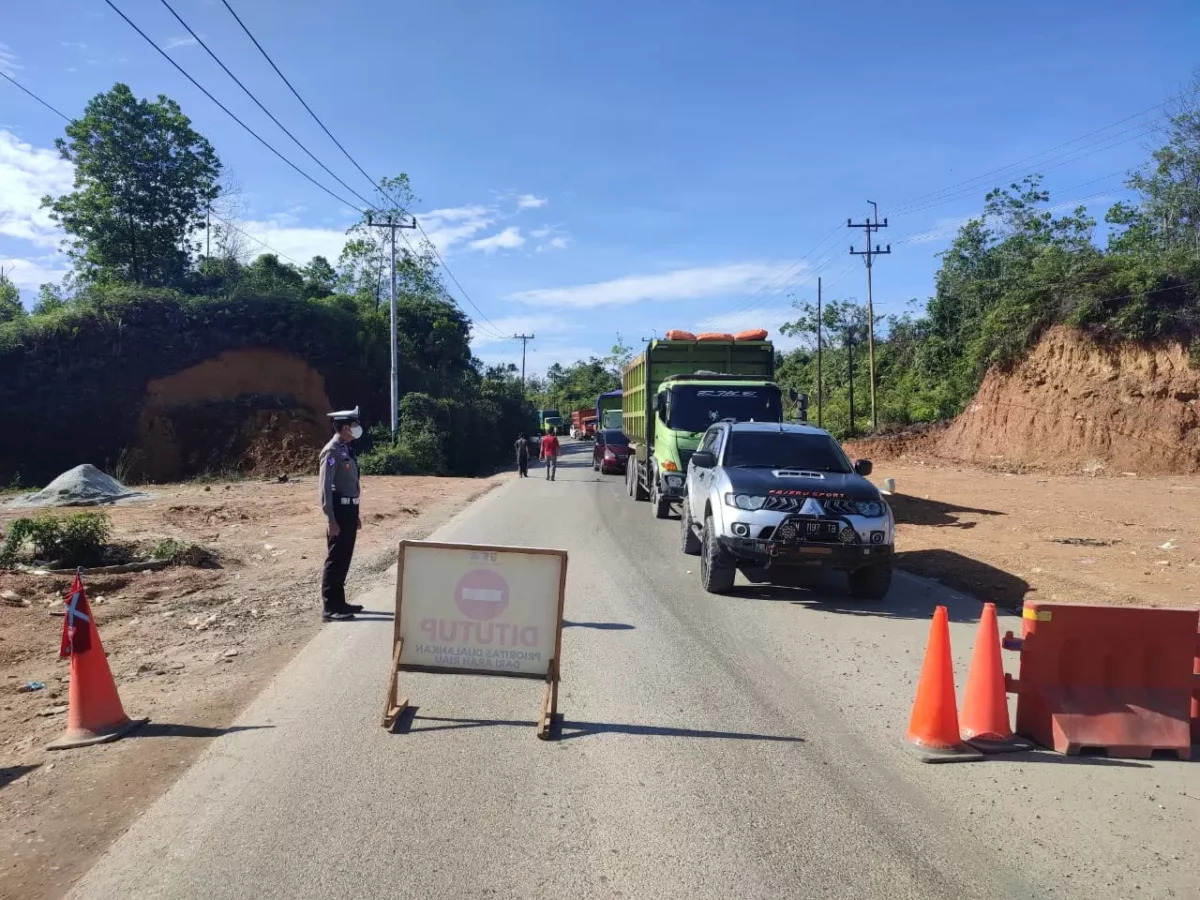 Kapolres Kampar AKBP Ronald Sumaja melalui Kasatlantas Polres Kampar AKP Vino Lestari menjelaskan, Jalan Lintas Riau-Sumbar Km 106-107 Desa Tanjung Alai, Kecamatan XIII Koto Kampar, Kabupaten Kampar masih uji coba dan diberlakukan sistem buka tutup.
