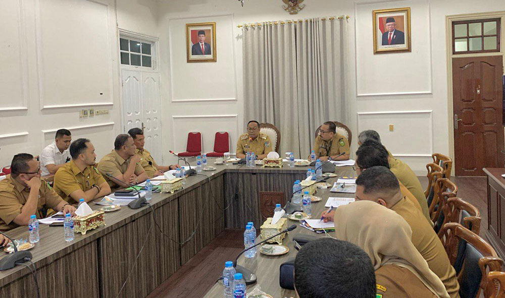 Rombongan Dispora Riau yang dipimpin Plh Kadispora Riau Helfandi SE saat melakukan audiensi dengan Pj Gubernur Riau Dr Rahman Hadi MSi di Kediaman Gubernur, Jalan Diponegoro Pekanbaru, Senin (14/10/2024). Salah satu yang dipaparkan adalah terkait KSP Stadion Kaharuddin Nasution Rumbai.(DISPORA RIAU UNTUK RIAU POS)