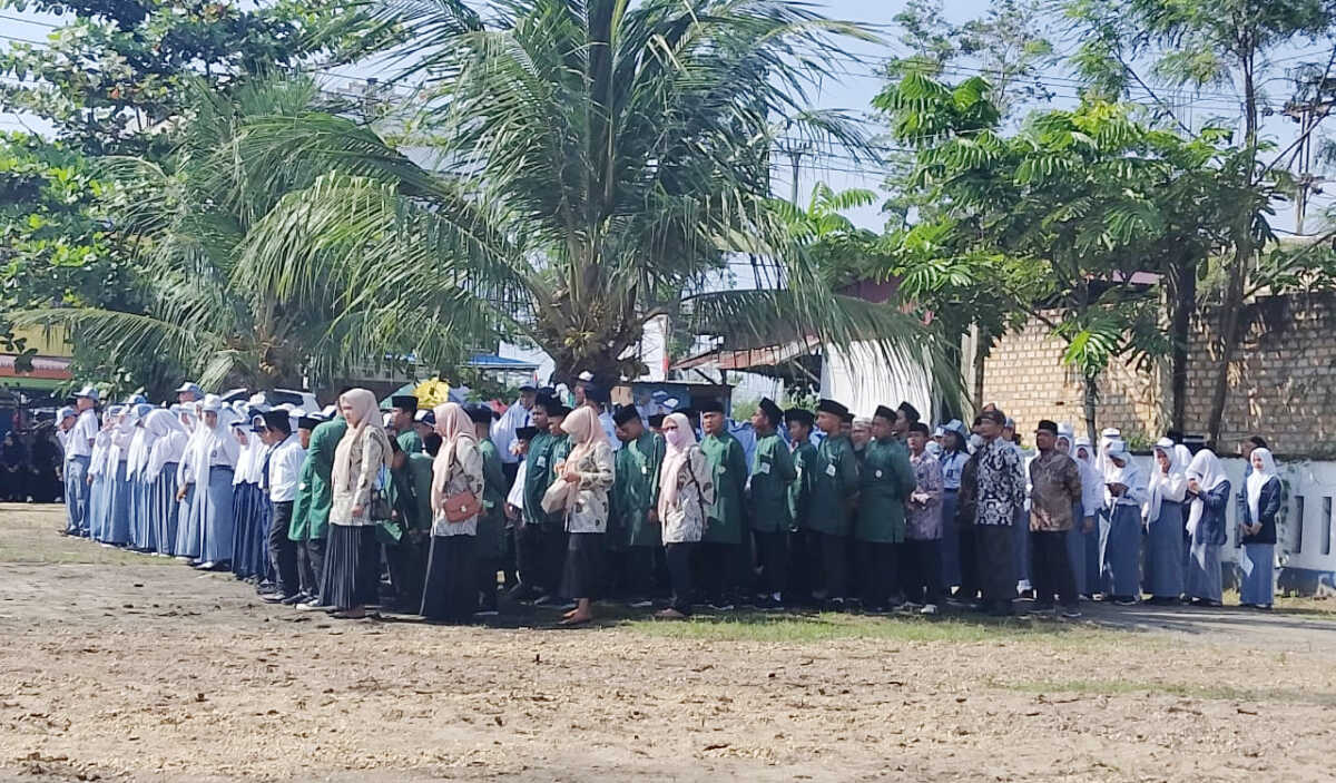 Suasana upacara peringatan Hari Kemerdekaan RI ke-80 di Ponpes Tahfidzul Raudhotul Quran Indragiri. (SATGASWIL RIAU DENSUS 88 UNTUK RIAUPOS.CO)