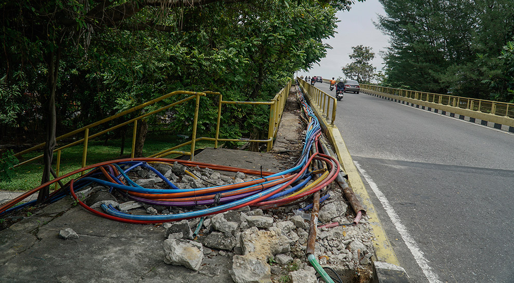 Ia menambahkan, proses pemindahan kabel tidak bisa dilakukan cepat karena mempertimbangkan tingkat keamanan yang tinggi mengingat lokasi berada di atas sungai. Pekerjaan diperkirakan selesai pada awal 2026.