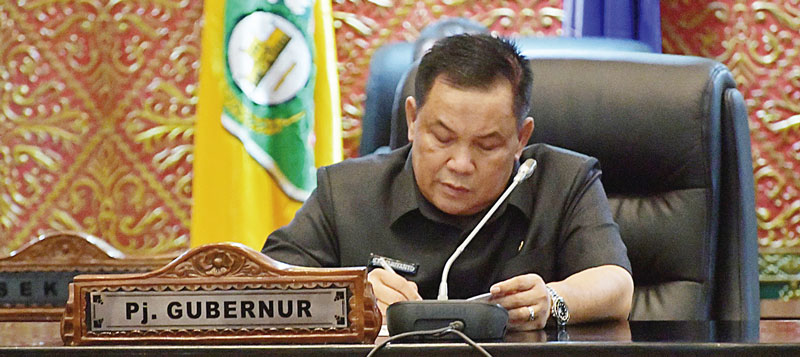 Penjabat Gubernur Riau SF Hariyanto saat mengikuti rapat paripurna DPRD Riau.