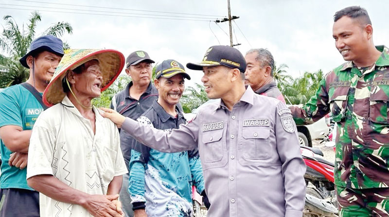 Wakil Bupati Bengkalis H Bagus Santoso menjumpai warga terdampak banjir di Desa Sungai Nibung, Kecamatan Siak Kecil, Bengkalis, Ahad (7/1/2024). (diskominfotik bengkalis untuk riau pos.co)