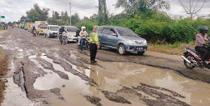 DURI (RIAUPOS.CO) – Ratusan kendaraan bermotor roda empat terjebak kemacetan panjang, akibat kondisi jalan rusak di jalan lintas Duri-Dumai, Senin (8/1).