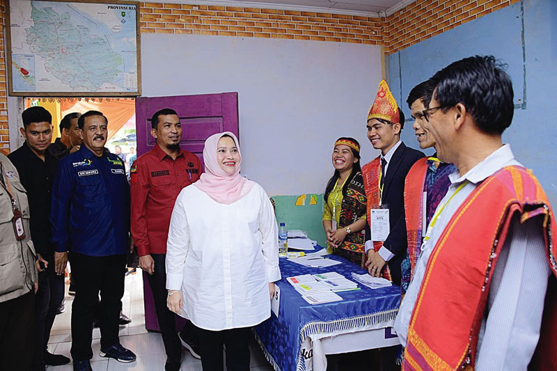Salah satunya seperti yang terlihat di TPS 18 Sinar Toba, Kecamatan Pinggir. Para petugasnya terlihat menggunakan pakaian adat Batak. “Wah luar biasa. Bagus dan kreatif petugas di sini. Penataan tempatnya juga difikirkan matang-matang,” ucap bupati.