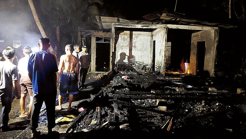 Rumah milik Suhaimi (54) warga Jalan Kampung Tengah, Desa Sungai Batang, Kecamatan Bengkalis ludes terbakar, Rabu (13/3/2024). (abu kasim/riaupos.co)