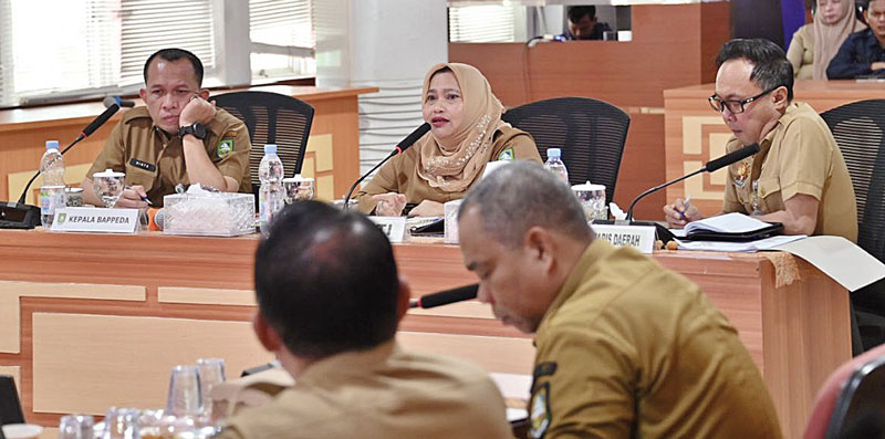 Bupati Bengkalis Kasmarni memimpin rapat Evaluasi Kinerja Pembangunan Kabupaten Bengkalis 2023 di Bengkalis, Selasa (16/1/2024). (Diskominfotik Bengkalis untuk riaupos.co)