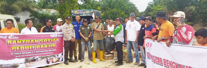 Ketua Umum IOF Pengcab Bengkalis CH Saragih bersama sejumlah pengurus membawa bantuan sembako berupa beras, telor, mi instan, minyak goreng serta kebutuhan harian lainnya, seperti perlengkapan bayi dan lainnya yang disalurkan untuk meringankan beban warga terdampak banjir.