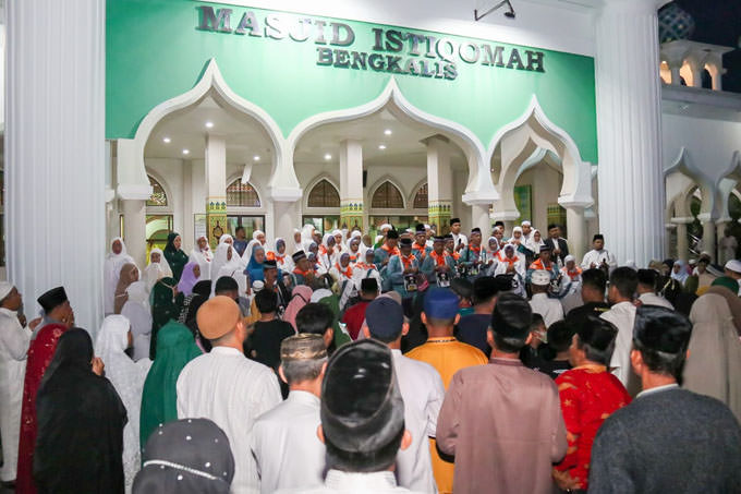 Setelah menunaikan Salat Subuh berjemaah dari masingg-masing tempat tinggal mereka, JCH asal Pulau Bengkalis dari Kecamatan Bengkalis dan Bantan langsung berkumpul di Masjid Agung Istiqamah Bengkalis.