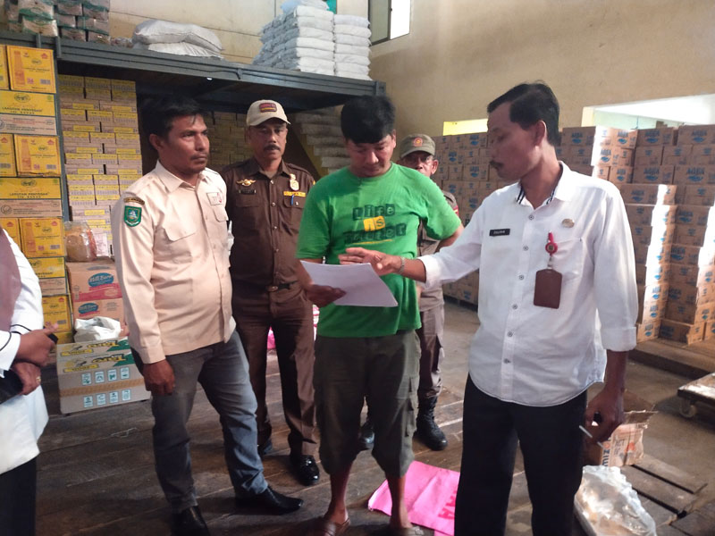 Pertama Kadisdagprin mendatangi gudang PT Berkat Karya Laris di Jalan Bengkalis, yang berisikan bahan pangan, seperti beras, kacang kedelai, telur dan minuman kemasan lainnya. Di sana Kadisdagprin juga sempat berdialog dengan penjaga gudang dan mendatang bahan pangan yang tersedia di dalam gudang tersebut.