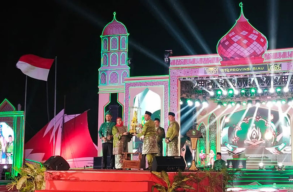 Suasana kian semarak saat Gubernur Riau Abdul Wahid bersama para bupati dan wali kota menekan tombol simbolis berbentuk mushaf Al-Qur’an sebagai tanda pembukaan resmi, diiringi cahaya lampu dan kembang api memukau. Qari Khairi Novandra, yang pernah berlaga di MTQ Internasional Tanzania, turut membacakan ayat suci Al-Qur’an menambah khidmatnya acara.