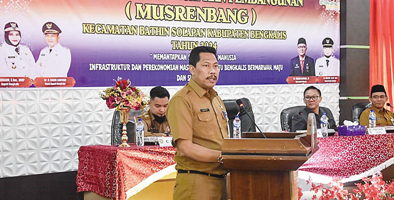 Staf Ahli Bupati Bengkalis Bidang Pemerintahan, Hukum dan Politik Ed Efendi, pada pembukaan Musrenbang tingkat Kecamatan Bathin Solapan, Selasa (30/1) mengatakan, sesuai arah kebijakan pembangunan Kabupaten Bengkalis 2025, yakni Memantapkan Kualitas Sumber Daya Manusia, Infrastruktur dan Perekonomian Masyarakat Menuju Bengkalis yang Bermarwah, Maju dan Sejahtera, tentunya tema ini sebagai penguatan pada tahun perencanaan transisi 2025 ke tahun perencanaan selanjutnya.