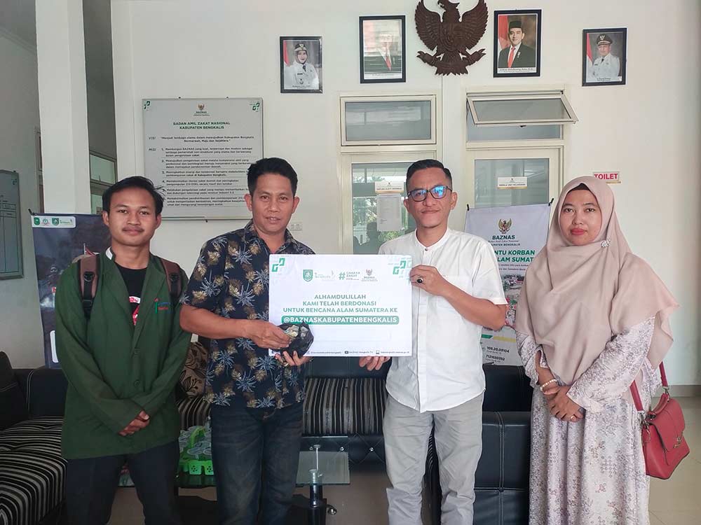 Bantuan tersebut diserahkan kepada Wakil Ketua I Bidang Pengumpulan Zakat Baznas Bengkalis, Risman Hambali, di Kantor Baznas Bengkalis, Selasa (30/12).