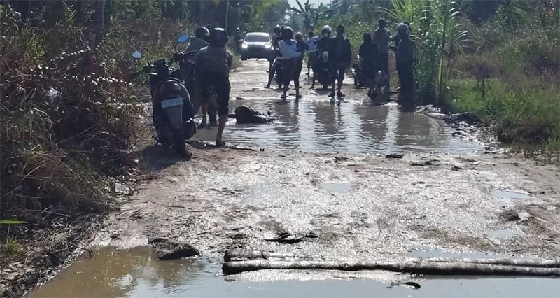 Kerusakan jalan tersebut membuat permukaan jalur menjadi berlumpur dan sulit dilalui kendaraan, baik roda dua maupun roda empat. Kondisi ini semakin parah ketika hujan turun karena tanah menjadi licin dan kendaraan kerap terperosok.