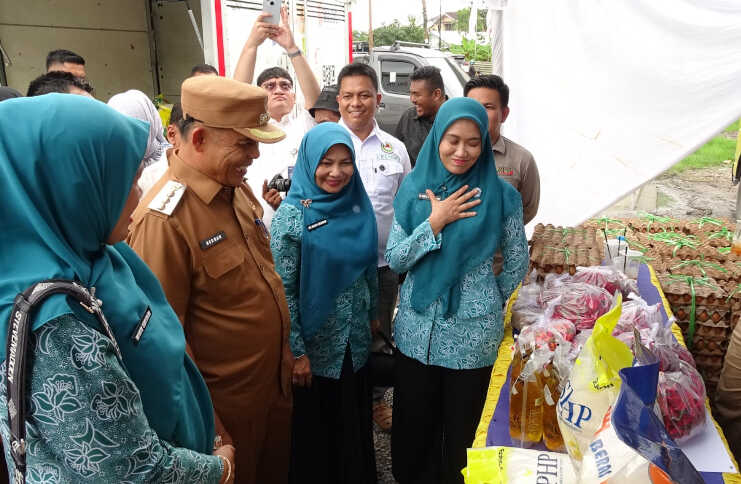 Dalam kunjungan itu, Henny didampingi Bupati Inhil Herman dan Ketua TP PKK Inhil, Katerina Susanti Herman. Bupati Herman menyebut, salah satu daya tarik pasar murah kali ini adalah hadirnya beras lokal hasil pertanian masyarakat Inhil.