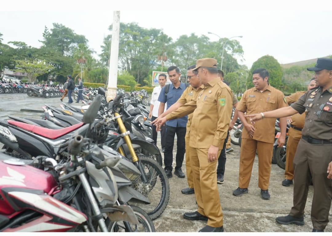 Bupati Inhil Herman mengumpulkan sepeda motor kendaraan dinas di halaman Kantor Bupati Inhil di Jalan Bunga, Tembilahan, Selasa (17/6/2025). DISKOMINFO INHIL UNTUK RIAU POS