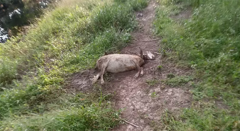 Satu dari 5 ekor hewan ternak warga di Desa Griya Mukti Jaya, Kecamatan Teluk Belengkong, Kabupaten Indragiri Hilir (Inhil) ditemukan mati dengan luka gigitan di leher, Sabtu (24/5/2025). ((Warga untuk Riaupos.co))