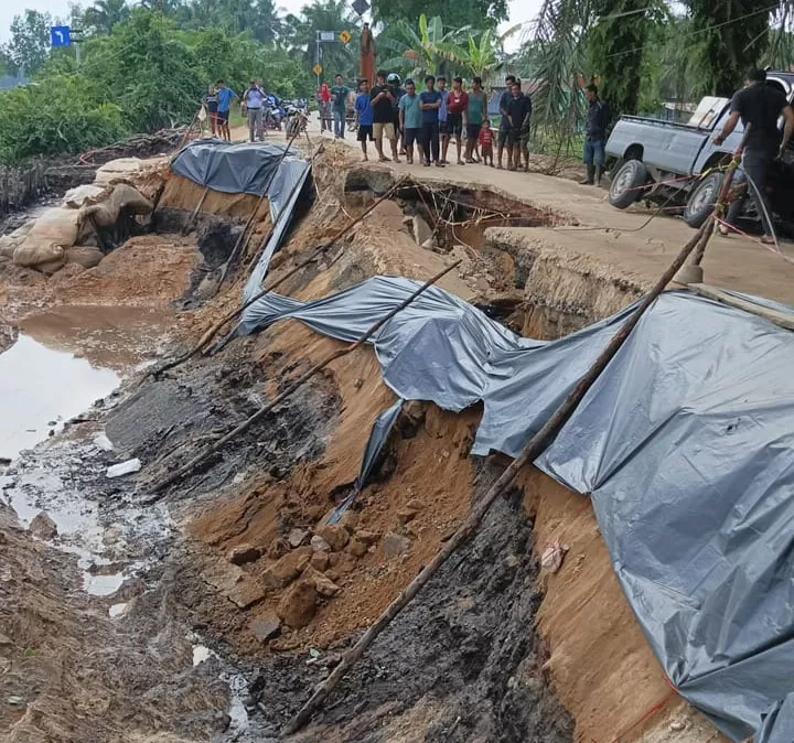 TEMBILAHAN (RIAUPOS.CO) – Ruas Jalan Desa Pekantua, Kecamatan Kempas, Indragiri Hilir (Inhil) kembali mengalami longsor, Sabtu (28/9/24). Untuk sementara arus lalu lintas (Lalin) dialihkan melalui Simpang Granit.