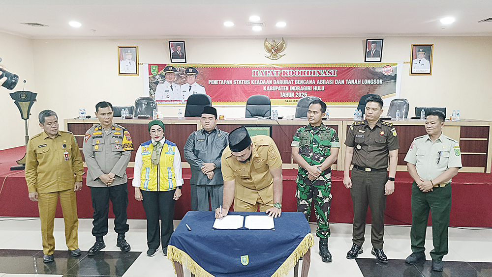 Dengan kondisi tersebut, Pemerintah Kabupaten Inhu menetapkan status darurat bencana abrasi dan tanah longsor tahun 2025, Senin (14/7). Karena, Sungai Indragiri yang membentang di 10 kecamatan dalam wilayah Kabupaten Inhu terus diancam abrasi.